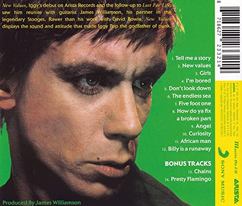 Following a series of classic albums with The Stooges and his more commercial Berlin period Iggy largely toned down the sound intensity with this strong effort. After his collaboration with David Bowie on 'The Idiot' and 'Lust For Life', Iggy musically looked back and forward with as result a pretty damn fine album. There are nods forward to the eclecticism of the later 'American Caesar' and also back in time via the album's collaboration with ex-Stooges, James Williamson and Scott Thurston, the former assuming production duties and the pair that shares the guitar playing. "Don't Look Down" is truly amazing. And "Tell Me A Story" is almost the definition of the great Iggy Pop. "Five Foot One" an instant classic.