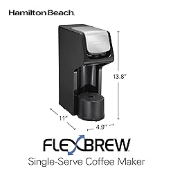 - Brew a cup of hot, delicious coffee with the Hamilton Beach® FlexBrew® Single Serve Coffee Maker and enjoy the flexibility of brewing two ways. Simply add your favorite pod, such as a K-Cup* pod, or coffee grounds. Add water, lower the lid, and press a button — your coffee will be ready in about 2 minutes. This one cup coffee maker allows brewing up to 10 oz with a pod and 14 oz with grounds. The slim design of this single serve coffee machine fits compact kitchens and countertops, measuring less than 5 inches wide. Its capacitive-touch controls offer simple operation, including options for regular and bold brewing. The 14 oz water reservoir is easy to fill, and the removable cup rest accommodates a standard-sized cup or a 7" travel mug. This versatile appliance holds either the pod holder or single-serve brew basket for use with various coffee pods and filters. Frequently used by coffee enthusiasts, office workers, students, and busy professionals, it performs well as an office coffee maker or everyday coffee brewer. With a compact footprint and reliable performance, it's a practical choice for anyone seeking pod coffee makers, one cup coffee makers, or compact coffee maker machines.