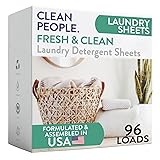 BECAUSE INGREDIENTS MATTER: CLEAN PEOPLE Laundry Sheets have NO 1,4 dioxane, NO SLS/SLES, NO Ethoxylated Alcohols, NO Optical Brighteners, NO Synthetic Dyes, NO Phosphates/Parabens. Hypoallergenic, Safe for the most Sensitive Skin, Dermatologist Approved. Oh and our Laundry Sheets are also VEGAN & CRUELTY FREE. MADE IN CANADA, NOT CHINA. Most Laundry Sheets are made in China. Clean People is Made in Canada. INCREDIBLY EFFECTIVE & GENTLE: Our Laundry Detergent is scientifically formulated with safer ingredients to remove stains & fight odors. Strong enough for gym socks and gentle enough for delicates. ALL WASHING MACHINES & CYCLES: CLEAN PEOPLE Laundry Detergent can be used with Top Loaders, Front Loaders, and HE (High Efficiency) machines. Formulated for any cycle (Hot, warm, tap, or cold) and all clothing, delicates, towels, bedsheets, even stinky gym socks. Oh and Clean People is Septic Tank Safe. SAY NO TO PLASTIC JUGS. CLEAN PEOPLE Laundry Sheets are Better for You & Better for the Environment. We use paper packaging. That means no more plastic jugs in landfills, no more liquid laundry detergent that’s 90% water on the back of trucks generating CO2 emissions. With each load of laundry, you’re doing your part to make the world a better place. Clean People Fresh & Clean Laundry Sheets 96 count may have varying packaging.