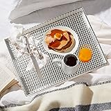 HofferRuffer Rectangle Serving Tray with Hole Handles for Coffee Table, Breakfast, Tea, Food, Butler - Countertop, Kitchen, Vanity Serve Tray, 16.2 x 12.2 x 2 inches, Faux Leather (Silver)