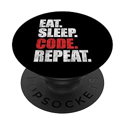 Eat Sleep Code Repeat Design for women and men who love computer science. Give it to a programmer Gift idea for a computer scientist but also for a computer science student PopGrip with swappable top; switch out your PopTop for another design or remove it completely for wireless charging capabilities. (Not compatible with Apple MagSafe wireless charger or MagSafe wallet.) Expandable stand to watch videos, take group photos, FaceTime, and Skype handsfree. Advanced adhesive allows you to remove and reposition on most devices and cases. Note: Will not stick to some silicone, waterproof, or highly textured cases. Works best with smooth, hard plastic cases. Will adhere to iPhone 11, but not to the iPhone 11 Pro nor the iPhone 11 ProMax without a suitable case.
