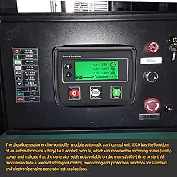 Professional AMF Control System -- Advanced Auto Mains Failure module automatically detects power outages and initiates generator startup. Large Backlit LCD Display -- Monitor multiple parameters at the same time, and these parameters are clearly displayed on the largest backlit display in its class. Universal Compatibility -- To help users connect, icons are used on the back of the module to help identify terminal functions. Intuitive User Interface -- User-friendly button layout with labeled terminals. Complete Installation Kit -- Includes silicone gaskets for sealing, and detailed installation manual for setup.