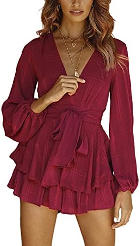 Relipop Womens Floral Print Romper V Neck Long Sleeve Double Layer Ruffle Hem Shorts Jumpsuit 2025 Beach Vacation Outfits