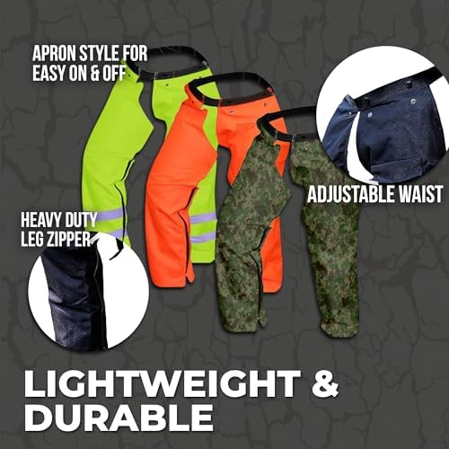 - LIGHTWEIGHT & DURABLE - Featuring heavy-duty leg zippers for easy on and off, these trousers are designed in an apron style with a calf zipper and leg straps, allowing for quick adjustments. Comfortable and durable, these trousers provide reliable protection for your outdoor tasks.