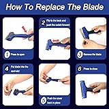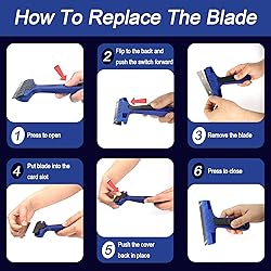 SCRAPER TOOL SET CONTENTS: 1PCS 4" Glass Scraper, 10PCS Double Edged Replacement Razor Blades, 1PCS Scraper Storage Box MULTI-PURPOSE CLEANING SCRAPER: It is sticker remover help you to scrape off stickers, decals, glued characters, labels, paint, paper, carpet glue off your windows, walls, tiles, floors. It is also glass scraper to clean your glass palette, oven, cooktop, ceramic top, and glass stove etc. Effective RAZOR BLADE SCRAPER TOOL: This 4-inch-wide flat razor scraper can clean a larger area than other mini scrapers. The ergonomic handle makes cleaning more labor-saving and efficient BLADES CHANGE OUT EASILY: Our scraper has locking and release mechanism which make scraper blades change out easily! Therefore, you can keep it store with the blade oriented inwards or put in the razor blade box when not in use to ensure safety DURABLE CONSTRUCTION: This sticker scraper is made of reinforced premium PP engineering plastic and high-carbon double sided steel blades, sturdy and durable