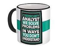Cybersecurity Analyst : Gift Mug We Solve Problems Ways You Dont Understand Work - White w/Black Handle
