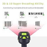Symcode 2D Bluetooth Barcode Scanner with Wireless Charging Stand 1968 Feet Transmission Distance 433Mhz USB QR Automatic Barcode Scanner with Charging Base Shock Dust Proof Hands Free Green