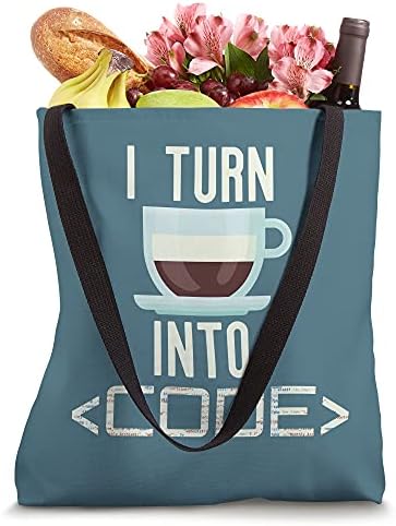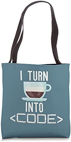 I TURN COFFEE INTO CODE Web Developers Coding Meme ON BACK Tote Bag