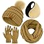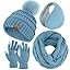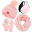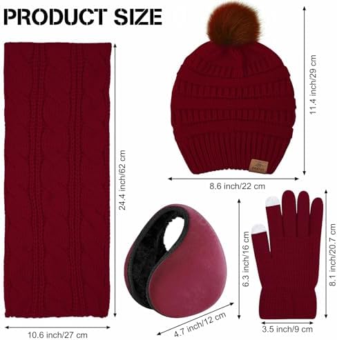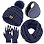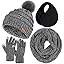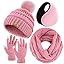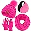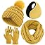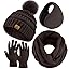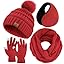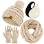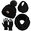 URATOT 4-In-1 Winter Warm Sets Knitted Scarf Touch Screen Gloves Beanie Pompom Hat and Winter Ear Warmer for Men or Women
