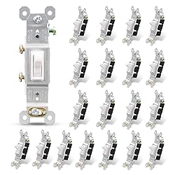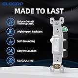 - ELEGRP Single Pole Toggle Light Switch, 15 Amp, 120 Volt, Toggle Framed AC Quiet Switch, In Wall On/Off Switch Replacement, Self-Grounding, Residential and Commercial Grade, UL (20 Pack, Glossy White)