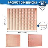 - Features: Easy to solder: The prototype boards are thick and single sided, and the plated holes are pre-coppered. The single-sided PCB prototype stripboard is very handy and easy to solder components and sensors Widely applicable: The PCB prototype boards can be applied for sodering and welding LED diode, IC, DIP, connector, resistor, sensor, transistor and other electronic power components or devices with 1 inch pin spacing. Specifications: Base material: copper Insulating material: organic resin Color: brown Size: approx. 73 x 100 mm/ 2.9 x 3.94 inch Package includes: 10 x Copper strip boards Notes: Manual measurement, please allow slight errors on size. The color may exist slight difference due to different screen display.