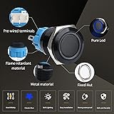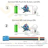 Specifications: 19mm with LED Latching push button switch (5PCS). How to use: press to turn on; press again to turn off. Contact configuration: 1NO. Mounting hole size: 0.74" 19mm, please check the size carefully before purchasing. This switch can be used for: cars, ships, trucks, homes, coffee machines, industrial equipment, medical equipment, etc. Waterproof: As the product has IP65 Waterproof, it is very suitable for use in marine applications such as ships.