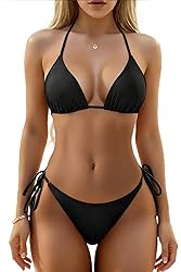 Holipick Two Piece Triangle Bikini Sets for Women String Bathing Suit Halter Top with Side Tie Bikini Bottom