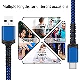 Fast charging speed: Compliant with USB Type C specification version 1.1, 56kilohm, ensuring a maximum charge of 3A. Low-resistance internal pure copper wire ensures a maximum charging speed of up to 3A and transmits data up to 480 Mbits.For ensure the charging speed of your device, please use the original USB C port wall charger, or high quality charger which can support QC 2.0/3.0 fast charging. Durable: The durable nylon woven fabric is made of a high-quality aluminum casing that makes the charger cable resistant to oxidation. Excellent resistance to twisting and abrasion.With a tested 10000+ bend lifespan. Multiple lengths: 3/3/6/6/10ft different lengths can be used on sofas, beds, cars and other places. Perfect for long enough wires to enjoy data synchronization and charging anytime, anywhere, without worrying about taking the cable anywhere. Compatibility: Compatible with Samsung Galaxy S10 / S10e / S9 / Note 8/9 / S8 / S8 +, Razer, Google Pixel 2 / Pixel / Nexus 5X / Nexus 6P, LG V30 / V20 / G6 / G5, Sony Xperia XZ, Huawei Honor 9/8, Motorola Moto X4 / Z2, HTC U11 and all USB C compatible phones and tablets. Warranty Policy: Each sale includes a 180-day Worry-Free Warranty to demonstrate our commitment to quality. If you have any questions, please feel free to contact us.