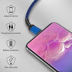 - ♦Compatibility: −Samsung Galaxy S10 Samsung Galaxy S9/S9 Plus Samsung Galaxy S8/S8 Plus −Samsung Galaxy Note 8/9 Samsung Galaxy A8/A8 Plus(2018) −LG G5, LG G6 LG V20,LG V30 −Moto z force,Moto z play Moto z2 force,Moto z2 play −Google Pixel/Pixel XLGoogle Pixel 2/Pixel 2 XL −Huawei P20/P 20 Pro, P10/P10 Plus, P9/P9 Plus, Mate 9/Mate 9 Pro, Nova/Nova Plus, G9 plus and other USB C devices. ♦Connectors: This user-friendly design allows you to plug into all your USB Type-C compatible devices without worrying about the orientation of the port.Premium Aluminum housing adds the durability of the cable. ♦High Speed Syncing: USB Type C Specification version 1.1, 56kilohm, standard identification, which ensures a safe charging at 3.0A Maximum and the speed of data sync up to 480Mbps. The maximum charge of 1 ft is 3.1A. The maximum charge of 2ft and 3ft is 2.4A. ♦Extremely Durability: Nylon Braided USB C Cable With a Bend lifespan of 10,000+ and Seamlessly Molded Joints,More Flexible and Durable ♦Fast Charge &Data Transmission: Compact gold tipped connections offer the best possible conductivity and connection for data and charging. Fits easily and securely into your device, while fitting most cases. ♦Proper Length: The cable is ideal for varied occasions, you can still use your devices while charging with an adapter in your bedroom, kitchen, and at the backseat of your car. Comfortable and convenient experience no more annoying messages, no constant reminder in the phone screen telling you the frustrating truth that the cable cannot charge your favorite device. ♥User Tips : Make sure the charger output does not exceed 5V/2A when your phone is charged, providing double protection for your phone charging safety.