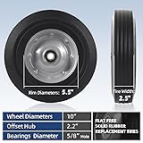 FLAT FREE SOLID RUBBER REPLACEMENT TIRES - Flats are inevitable, or are they? These solid rubber tires will remove the hassle of flat tires so that you can keep going without worries! These solid rubber tire and wheel assembly fit vehicles and equipment with 10-inch tires with 4-inch rims, 5/8-inch axles, a offset hub 2.2-inch, and a tire width between 1.50 inches and 2.50 inches. It’s a guaranteed fit! FLAT-FREE TIRES FOR HAND TRUCKS, WHEELBARROWS, AND MORE - Versatility and dependability are the two key selling points of AR-PRO’s flat-free tire and wheel assemblies. They are highly compatible replacement tires for dollies, trolleys, hand trucks, lawnmowers, wheelbarrows, yard trailers, wagons, snow blowers, pressure washers, air compressors, and other utility equipment. HEAVY-DUTY TIRES MADE FROM HIGH-QUALITY MATERIALS - These are solid rubber tires you can depend on in any weather condition. Made from premium-quality plastic and 100% natural solid hard rubber. Perfect for heavy-duty hauling and transporting applications with a maximum load capacity of 400 pounds. SAFE AND COMFORTABLE RIDE - Say goodbye flats without saying goodbye to a smooth and comfortable ride. AR-PRO flat-free tires provide convenience, safety, and comfort. With 4X thicker rubber walls, these tires will provide optimum shock absorption even on bumpy roads. These are solid tires with a solid performance. US-BASED CUSTOMER SERVICE - We respond to all product-related questions or inquiries within 5 hours. Not satisfied with your purchase? We have a 30-day free return/refund policy.