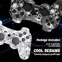 Controller for PS-3 Wireless, Gaming Remote Joystick for Play 3 with Charger Cable Cord (Black Ghost, White Skull)
