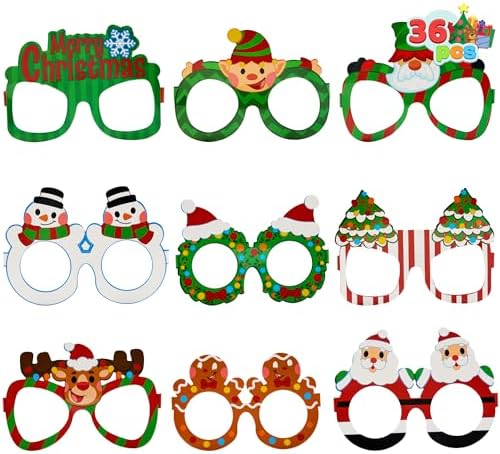 JOYIN 36 Pcs Christmas Paper Eyeglasses, Christmas Party Glasses, Frame Costume Eyeglasses Assorted Designs for Adults and Children for Christmas Party Supplies Photo Booth and Party Favors