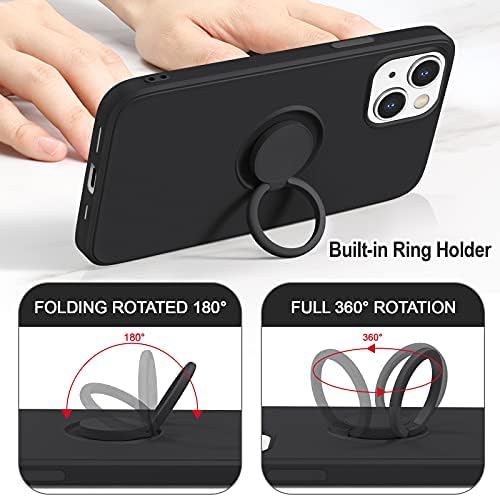 Hython for iPhone 13 Case with Ring Stand [360° Rotatable Ring Holder Magnetic Kickstand] [Soft Microfiber Lining] Slim Shockproof Rubber Protective Phone Case Cover for Women Men, Black