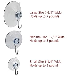 - The Creative Hobbies Suction Cup Hooks Combo Pack offers a versatile and reliable solution for hanging various items on smooth surfaces. Specially designed for stained glass art, this 10-pack comes pre-assembled with rustproof metal hooks, available in three different sizes for all your needs. These USA-made suction cups are crafted from thick, pliable plastic for a strong, dependable hold that lasts. They are gentle on surfaces, so you never have to worry about any damage. Application is as simple as moistening the surface, applying the suction cup, and pressing firmly to secure it. Plus, the easy-release tab makes removal and reapplication a breeze. Keep them organized in the included reusable, hangable storage case. Upgrade your space today with the most reliable suction cup hooks on the market.