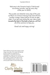 - Binary Puzzle a Day 2022Welcome to this brand-new book for 2022 containing a huge 366 binary puzzles to enjoy - one for each day of 2022 and a bonus puzzle for 1st January 2023! All the puzzles in this book are 10x10 in size, and solutions are all available at the back of the book. Every puzzle has a single solution that can be reached by logic alone, using these rules: — Place five 1’s and five 0’s in each row and column that compose the grid. — The same number cannot appear in more than two consecutive squares in any row or column. — In the finished puzzle, each row must have a different sequence of 0s and 1s to any other row, and likewise for each column. We hope your enjoy this book - happy solving!