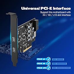 PCIe USB Expansion Card: Provides 4 external ports for any desktop computer that supports PCIe x4 to x16 to connect additional USB devices to the computer system.In addition,the card uniquely designed internal 19 pin USB 3.0 header and USB Type E can be DIY extended to the front panel of your computer SuperSpeed USB 3.1 Gen 2: Based on the ASM3142 high-performance chipset,it allows you to quickly access your files with a data transfer rate of up to 10Gbps.At lightning speed.Transfer high-definition movies, photo, music,etc. Note: The actual transmission speed may be limited by the connected device Wide Compatibility Rang: Compatible with Windows XP/7/8/10/11/Vista/Mac OS 10.8.2 or above operating system,can support PCIe 3.0,PCIe 2.0 computer motherboards,suitable for PCI Express x4,x8 or x16 slots,The PCIe to usb c card port is backward compatible with USB 3.1, USB 3.0 and USB 2.0 peripherals.(Windows Vista /XP/7 system needs to install the driver from the CD.) Easy Installation: It can be powered directly from the PCI-E port on the motherboard,plug and play (Win 10/8/Mac os 10.8.2 and above).In addition,each port has a separate smart insurance component to protect your computer equipment. (The USB C card doesn't currently support Win 11 desktop systems and MSI series motherboards.) What Can You Get: 1x PCIe USB Card,1x low-profile bracket,1x CD drive,2x screws. This pcie card is backed for 2-Years