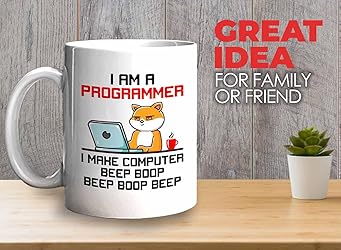 Made for Daily Enjoyment: Durable ceramic construction ensures a smooth drinking experience for programmer Easy and Secure Grip: C-handle provides a comfortable hold, perfect for coder and technologist sipping their favorite drinks Glossy and Eye-Catching: Shiny finish enhances software engineer, computercientist designs, adding character to any setting Just the Right Size: Available in 11oz (0.33L) and 15oz (0.44L), ideal for web developer and enginneeringtudent enjoying coffee, tea, or hot cocoa Effortless Cleaning: Microwave and dishwasher-friendly, making it convenient for hacker who appreciate easy care