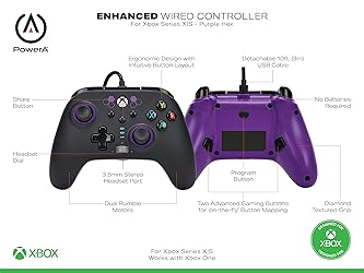 PowerA Enhanced Wired Controller for Xbox Series X|S - Purple Hex, Gamepad, Wired Video Game Controller, Gaming Controller, Xbox Series X|S - Xbox Series X (Renewed)