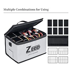 - Zeee Lipo Battery Safe Bag LiPo sacks Guard Fireproof - for Lipo Battery Charge & Storage Protect your home and valuables from a fire due to a Lipo battery failure with Zeee Lipo-Safe bag. Useful for storage, travel and during charging. Specification Material: Outside fireproof fiberglass fabric, heat insulation temperature up to 1000℉. Interlayer fabric with waterproof effect Non-woven fabric with flame retardant Dimensions: 10.6x6.7x6.7in(LxWxH) Package included 1*Zeee Lipo Battery Safe Bag Warning: Never leave charging battery unattended. Always ensure the battery is on a non-flammable surface. Ensure only the charging battery inside the bag and the lipo battery bag is sealed while charging. The LIPO SAFE BAG is intended to reduce the chances of damage in the event of a lipo fire.
