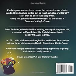 - Emily's grandma carries a purse, but no one knows what's inside. Grandma had pulled out so much WACKY and GOOFY stuff that no one could keep track.Emily thought she used some Magic, so she called it Grandma's Magic Purse. -----------------------------------------------------------------------------------------------------------------Sean Sullivan, who started his writing journey at ten years old, wrote and self-published his first children's book, Bobby No Luck, in 2020.In 2021, with his immense imagination and talent for creative writing, he wrote his second book, Grandma's Magic Purse.Grandma's Magic Purse will surely bring big smiles to young children and early readers.Cover Graphics/Art Credit: Endy Astiko