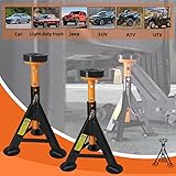 BESTOOL jack stands boast a distinct design featuring circular base pads and a flat top rubber saddle, providing superior protection to your car frame compared to conventional curved axle post stands. These stands ensure maximum stability and safety, with removable and replaceable non-slip pads. Our car jack stand is equipped with a mobility pin height adjustment mechanism that offers 7 adjustable positions, delivering flexibility and added security for all your lifting needs. The rubber circular base pad is specifically designed to prevent paint scratches on your vehicle. The stand is finished with a powder coating to resist rust, and supports a load capacity of 4 tons (8,000 lbs), with a height range of 13.4 to 20 inches. Constructed from high-grade forged steel, the 4-ton jack stands feature a welded frame design that ensures durability. The wide pyramid foot base enhances strength and provides stable support for your vehicle. These jack stands are perfect for modern low ground clearance cars, catering to a variety of vehicles such as small cars, SUVs, light-duty trucks, jeeps, ATVs, UTVs, and more.