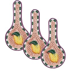 - Hand painted lemon themed decorative and useful kitchen decor accessories. The lemon Spoon rest tea bag rest will bring a charming appeal to your kitchen. Small spoon rest measures 3.25 X6.5 inches. Protect your counter and table from messy flatware or kitchen utensils with this food lemon spoon rest.
