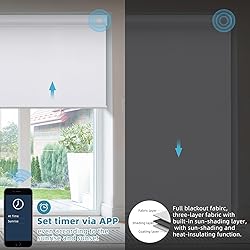 SmartWings Motorized Smart Blinds with Remote, Custom Automatic 100% Blackout Roller Shade Compatible with Alexa/Homekit/Google, Electric Smart Blinds for Indoor Windows, Essential White