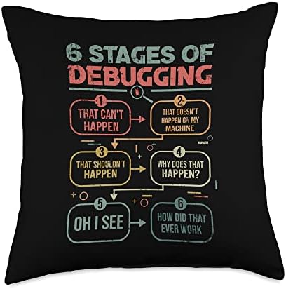 6 Stages of debugging for a Software Developer Programmer Throw Pillow