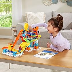 • Compite con familiares y amigos para construir el mejor circuito y mantener las canicas en movimiento a través de emocionantes acrobacias y desafíos; Encuentra más diseños visitando el sitio web de VTech Kids; crea un juego extremo combinando los sets Marble Rush (se venden por separado)