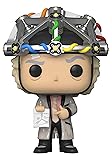 - Invent your own time-machine travel adventures with this exclusive Back to the Future Pop! and Tee Boxed Set. The short-sleeved royal heather tee-shirt captures a blast back to 1985, when Marty McFly is thrown into the 50s and meets up with Doctor Emmett Brown, who is wearing his thought-reading helmet device. On the front of this comfy tee, Pop! Doctor Emmett Brown wears his famous mind-reading helmet, and the words “Great Scott” appear above. This crewneck tee-shirt pairs well with casual bottoms, such as joggers, jeans, or shorts. On chillier days, you could layer it with a light jacket or a button-down long-sleeved shirt. It’s the perfect tee for experimenting in the lab—or mixing together snacks for a relaxing day. Pop! Doctor Emmett Brown with Helmet glows in the dark and holds the plans for the flux capacitor, which powers the time machine he invented. Capture the excitement and set the stage for all your favorite Pop! Movie stars. Vinyl figure is approximately 3.75-inches tall. Tee-shirt comes in adult unisex sizes XS-3X. 100% cotton. Please note: We are not able to exchange sizes or offer replacements for apparel that was sent in the size ordered.