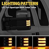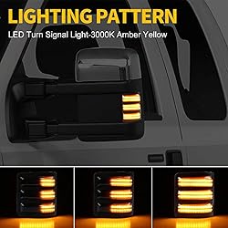- F250 F350 F450 F550 Super Duty Side Mirror Light Turn Signal and Parking / Running Light Blinker Lamp This is a quick and easy way to dress up your vehicle. New upgraded mirror lights give your car a trendy smoked black surface and dynamic LED turn signal light with enhanced safety & visibility at night. In just minutes you can replace the stock orange mirror light with stunning led lights that make your driving intentions better known to other drivers for safe driving. PRODUCT SPECIFICATION Operating Voltage: 12V Working Power: 5W Lens Color: Smoked Lens Waterproof: IP65 LED Type: 96pcs SMD 2835 LED Chip Usage: Side Mirror Marker Light Material: PC Lens & ABS Plastic Housing PRODUCT FEATURES Upgraded vision with Letter “C” Shaped led chips Easy Installation, plug and play No any modification needed Better in water resistance Light color: 3000K White (LED Parking/Running Light); 6500K Amber (LED Turn Signal Light) Replace OEM Number: 7C3Z-13776-A, 7C3Z-13776-B, 7C3Z13776A, 7C3Z13776B LIGHTS OPERATE: Turn Signal (no running light): sequential amber signal Running Light (no turn signal): solid white strip light Running Light On & Signal Activated: solid white light turns off during signal and amber light flashes until signal is complete. After signal is complete, white light illuminates again Install your new ligh within 5 minutes! Step 1: Move the mirror to a specific position to show the white tab of the original light. Step 2: Use a screwdriver to push the tab to pop the light out of its place. Step 3: Move the light bulb sockets from the lens, and then move the light bulbs from the sockets. Step 4: Connect the plug to the bulb sockets. (Please note that 3 tab socket connects to turn signal connector while 2 tab socket connects to running light). Step 5: Tuck away the wires and snap the new side maker light into the mirror. Step 6: Test your new light! Test the turn signals to make sure both panels flash yellow. Package Including: One pair Swithback Led turn signal and DRL Light(Left and Right Side)