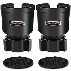 UPGRADE VERSION: Seven Sparta's Newest Cup Holder Expander features an Offsetting Base to maximize space, allowing two cup holders to be used side by side. It is compatible with gear shifters, center console lids, car dashboards, and other center console buttons. Please note that our product does not include cooling or heating functions. FITS MOST 32oz - 40oz WIDE BOTTLES & MUGS WITH 3.5in - 4in DIAMETER: Our car cup holder expander fits bottles and mugs with diameters of 3.5-4 inches. Not recommended for cups smaller than 3.5 inches or larger than 4 inches, tapered bottoms > 3.7 inches, or small bottles/cans (e.g., soda cans). EXPANDABLE BASE FOR 2.5in -3.75in DIAMETER CAR CUP HOLDERS: Our adapter securely fits most vehicles (cars, trucks, motorcycles, boats, RVs, golf carts). Not compatible with inclined/edged (>1.8in depth), square/non-round holders, holders close to handbrake/with covers, or compact cars with holders below dashboard. Check product images for details. SECURES TIGHTLY WITHOUT TIPPING OR SPILLING: This car drink cup holder built with solid and thick plastic and the rubber tabs around the top of the cup holder hold the cup firmly in place without tipping or spilling when driving down the road. LARGE SLOT FOR MUGS: It is easy to remover the cup holder from the slot. And the cup holder has a base deep enough to provide great balance for your water bottle.
