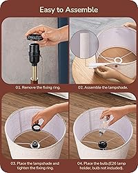 【Stylish Pull Chain Switch】Designed with pull chain switch, more convenient to turn the mid century table lamp on and off even lying in bed, metal inverted trianglea exit of the pull chain makes your operation smoothly without abrasion, ensures the switch built to last 【Mid-Century Modern Style】Linen fabric lampshade paired with wooden and irony lampstand, metal part finished with frosted bronze, create a perfect combination of modern and traditional. Nightstand lamp provide a gorgeous mid-century atmosphere for your home and office space 【Easy to Assemble】Simply clip the lampshade rolled up onto the metal ring and fix with Velcro, then twist the stem, shade, socket ring, and bulb together tightly, 5 minutes is enough. E26 base, suitable for Maximum incandescent bulb 60W, LED bulb 12W(Bulb Not Included) 【Stable Base & Saving Space】Metal high-quality base is heavy and sturdy enough to keep the bedside table lamp stable, free from tipping over by children and pets easily, compact round base design saves your space, great for kid's room, narrow sofa tables, and nightstands 【Protect Your Eyes】Optimal height and open-top linen fabric lampshade can soften and diffuse beams, light streams down, up or through the shade to illiminate your room without glare. EDISHINE table lamp great for bedroom, living room, office, etc. The cord, plug, switch of the bedroom lamp are UL listed
