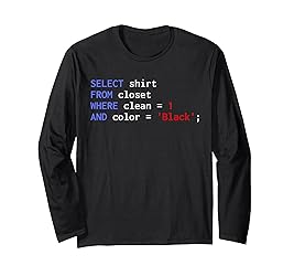 Funny design. Are you a database administrator, coder or data analyst and love writing a SQL query. If you are a compuer scientist and love working with a nerd programmer in your geek office this black design is for you. It is clear that every network admin loves coding programming languages such as html and java. With computer science you are able to work as a software developer and write a it code. Lightweight, Classic fit, Double-needle sleeve and bottom hem