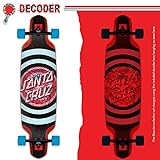 - Santa Cruz Skateboards' Decoder Roskopp Dropdown Longboard Cruzer boasts a transformative decoder spot gloss graphic on an updated, modern medium-sized drop down shape with routed wheel wells. It's equipped with new 160mm Bullet reverse kingpin downhill trucks and 66mm 78a Santa Cruz branded Slimeballs wheels. The deck print changes when viewed through the included decoder lens hangtag.