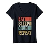 Womens Software Developer Coder Eat Sleep Code Repeat V-Neck T-Shirt
