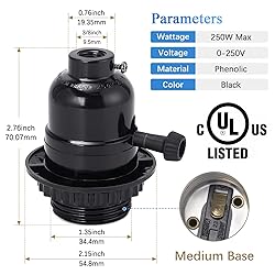 - DiCUNO UL Listed Black E26 Lamp Socket Replacement with ON/Off Switch Knob, Threaded Medium E26 Base Light Socket Suitable for General Purposes, such as Table Lamp, Floor Lamp Repair Kit.