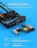 【20Gbps High Speed】USB-C port features the latest USB 3.2 Gen 2x2 standard, which supports an extremely fast data transmission rate up to 20 Gbps. It is faster enough to transfer of files within a short time. (Type-c standard cable is inherently be able to operate at both USB Type-C Gen 2 10Gbps and Gen 2x2 20Gbps speeds. The 20Gbps specialized port is required on the device to meet the full 20Gbps transfer speed.) USB 3.0 ports, compliant with the USB 3.0 standard, supports up to 5 Gbps of bandwidth, which enables you to connect variety of your USB devices with ease 【Wide Compatibility】Compatible with Windows 11/10/8.1/8/7/Vista/XP. Convert your 3.5’’ floppy disk drive space into 2 USB 3.2 Gen 2 USB-C port, 2 USB 3.0 ports, 1 SD slot and 1 microSD/TF slot. Increase the scalability of desktop computers to meet various needs. Note: please insert SD card upside down(label down) 【Convenience】Easy installation and huge expansion for your PC casing. Quickly adds ports through available 19-pin USB3.0 and 20-pin USB3.2 Key-A Type-E headers for connecting a variety of external USB devices. (Note: Some old motherboard do not have USB3.2 Type-E/Key-A 20-pin header, suggest to use a usb front panel adapter(Type-E Key-A to 20-pin header) adapter when installing.) 【Stability and Safety】Sturdy construction ensures a long service life and durability, and package contains 6 screws to make it more stable. Multiple safety protection measures such as over-current protection, over-voltage protection and short circuit protection (Note: power supply requirement for card reader and external hard drive.) 【Package Contents】GRAUGEAR 3.5’’ front panel usb hub with internal card reader, screws, USB3.2 Type-E Key-A 20-Pin Header and USB 3.0 19-Pin cables, instruction manual and friendly customer service