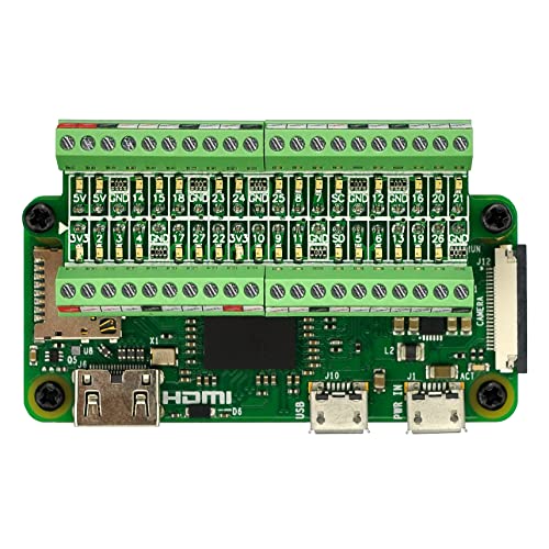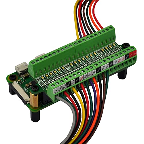 Ultra-small RPi GPIO Status LED & Terminal Block Breakout Module. 1, The item has been soldered and assembled. Support for Raspberry Pi 1 Model B+, Pi 2 Model B, Pi 3 Model B, Pi 3 Model B+, Pi 4 Model B, Pi Zero, Pi Zero-W, Zero-2W. 2, GPIO status LED and power 5V / 3.3V indication. GPIO output or input level high LED on, output or input level low LED off. 5V blue, 3.3V red, GPIOs green. The position of the LED is in a one-to-one correspondence with the position of the Raspberry Pi 2x20pin connector, and the logic level of the GPIO can be observed very quickly and intuitively. The driving current of each LED is only 0.1mA, so you don't have to worry about it affecting the read and write status of GPIO. 3, Terminal block pitch 2.54mm/0.1", wire size range 28AWG to 18AWG, strip length 4.5mm, screw M1.6 steel, pin header and cage copper. 4, 2x20 positions header connect to Raspberry Pi board. FR-4 fiber glass PCB, dual copper layers. 5, Packing list: 1x terminal block breakout module, 4x M2.5x6mm screws, 4x 10mm nylon standoffs. 2x 11.5mm brass standoffs, 1x small slotted screwdriver (NOTE: the item not include Raspberry Pi Board).