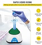 [ Excellent Mixing Experience ]: Fixed speed of 6000rpm is one of the fastest spinning speed for vortex mixer on market,and 6mm orbital diameter ensures fully vortex and mix containers of 50mL in shortest time,ideal to help you work efficiently. [ One Touch Operation ]: The vortex mixer is very easy to use as soon as you get it,lightly press the center of the silicon cap,the vortex mixer start working,convenient for repetitive and continuous mixing all day! [ More Stable when Mixing ]:The vortex mixer operates with new version brushless DC motor,and 4 non-slip foot pads on the bottom ensure the mini vortex mixer works smooth and quiet,stand firmly on table when mixing. [ Efficient Mixing in Seconds ]: With the premium lightweight material and powerful brushless motor in it,our mini vortex mixer works with faster rotation speed to drive liquid rotates, and mix full 50ml containers effectively in seconds,great to save your time! [ Wide Application Support ]: This vortex mixer shaker is ideal to be used for laboratory applications, school test tube agitator, acrylic paints shaker, tattoo ink mixing, eyelash gel adhesive mixer, salons nail polish mixing, vortex glue shaker, essential oils shaker etc,great to meet all your needs.