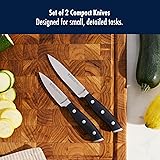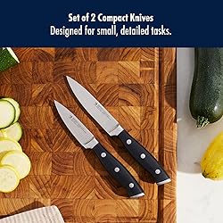 STAYS SHARP LONGER: Professional, satin-finished blade boasts precision cutting and is finely honed for long-lasting sharpness. THE LAST KNIFE YOU’LL EVER NEED TO BUY: German Engineered Knife Informed by over 100 Years of Mastery. HENCKELS knives are built to last. DURABLE AND BALANCED: Forged bolster construction offers durability and balance and a seamless transition from blade to handle. SET INCLUDES: 3-inch Paring Knife and 4-inch Paring Knife. PERFECT FOR DETAILED KITCHEN TASKS: Use for meal prep, especially when prepping fruits, vegetables, and meats. QUICK CLEAN UP: No-fuss cleanup, in the dishwasher or by hand. Stain and rust-free blades. WORTH THE SPLURGE: HENCKELS knives start out razor-sharp and stay sharper longer, even with minimal care.