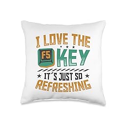 100% Polyester I Love The Key Its Just So Refreshing. Funny saying for computer nerds who love the F5 shortcut to refresh the data. Perfect IT support and web developer motif. 100% spun-polyester fabric Double-sided print Filled with 100% polyester and sewn closed Individually cut and sewn by hand Spot clean/dry clean only