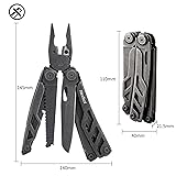 BRAND BIG DIFFERENCE: Two fresh upgrade to our pocket knife pliers kit(Flagship Pro Dark); Now added a FULL-SIZE SCISSORS and REPLACEABLE WIRE CUTTERS to this multi tool, ready for tackling jobs tough, big and small for years to come. (Note: Package including additional 2 pack replacement blades for further replacement.) SUPERIOR MATERIAL: Our multitool scissors is constructed of 5 kinds of alloy steel which effectively prevents corrosion, guarantees great hardness, wear resistance and long-term durability. This tactical multitool has an advanced 3D hollow structure, finished with stonewash, giving an aged effect for comfortable use. (Note: It is the new, not second hand) 16 IN 1 EDC MULTITOOL: This pocket size multi-pliers seamlessly combined 16 parts including Plier, Scissors, Knife, Saw, Wire Cutter, Screwdriver, Bottle/Can Opener, Belt Cutter, Ruler and Pocket Clip into one multitool. It is an ideal multi-pliers for outdoor activities like camping, fishing, hiking, cooking, picnic, DIY and more. READY FOR EVERYTHING: This multitool pocket knife coming with the pocket clip, you can attach it to your belt or clip this on a difference belt, perfect for outdoor sports, survival, camping, fishing, hiking, hunting as well as DIY. It also a great gift idea for your dad, husband or boyfriend, when they usie this tool, just miss you. VISIBLE HIGH QUALITY: High-quality engineering guarantees years of reliable performance. Real shots without beautification, you can enjoy its quality and durability. If you have any questions about the product, please contact us.