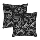 Perinsto Video Game Controller Background Throw Pillow Covers Set of 2 Gaming Gadgets Decorative Pillowcases Soft Cushion Covers for Sofa Couch Bed Home Decor, 18"X18"